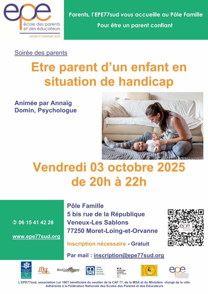 Inscription en ligne : https://epe77sud.org/inscription-soiree-espace-parents-ecole-educateurs-77-sud/.
