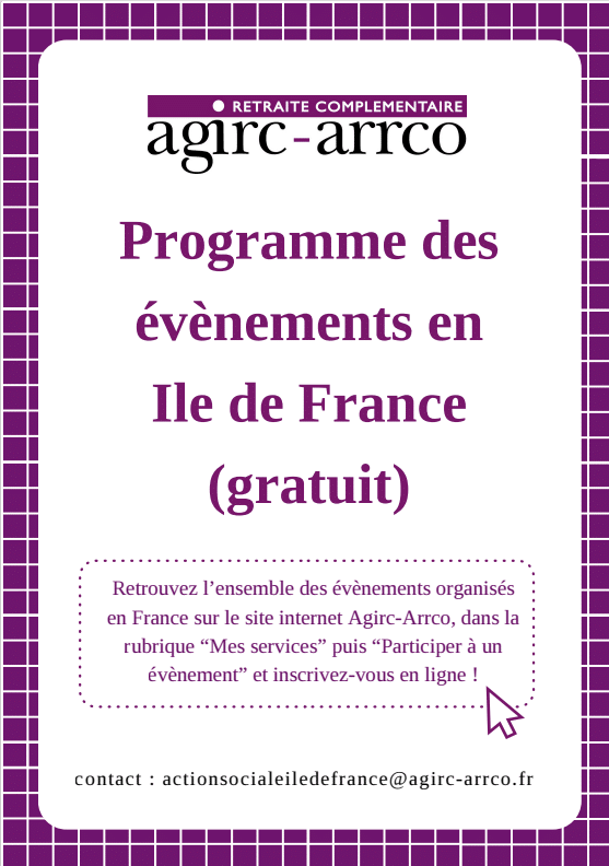 Pour tout renseignement et/ou pour vous inscrire actionsocialeiledefrance@agirc-arrco.fr